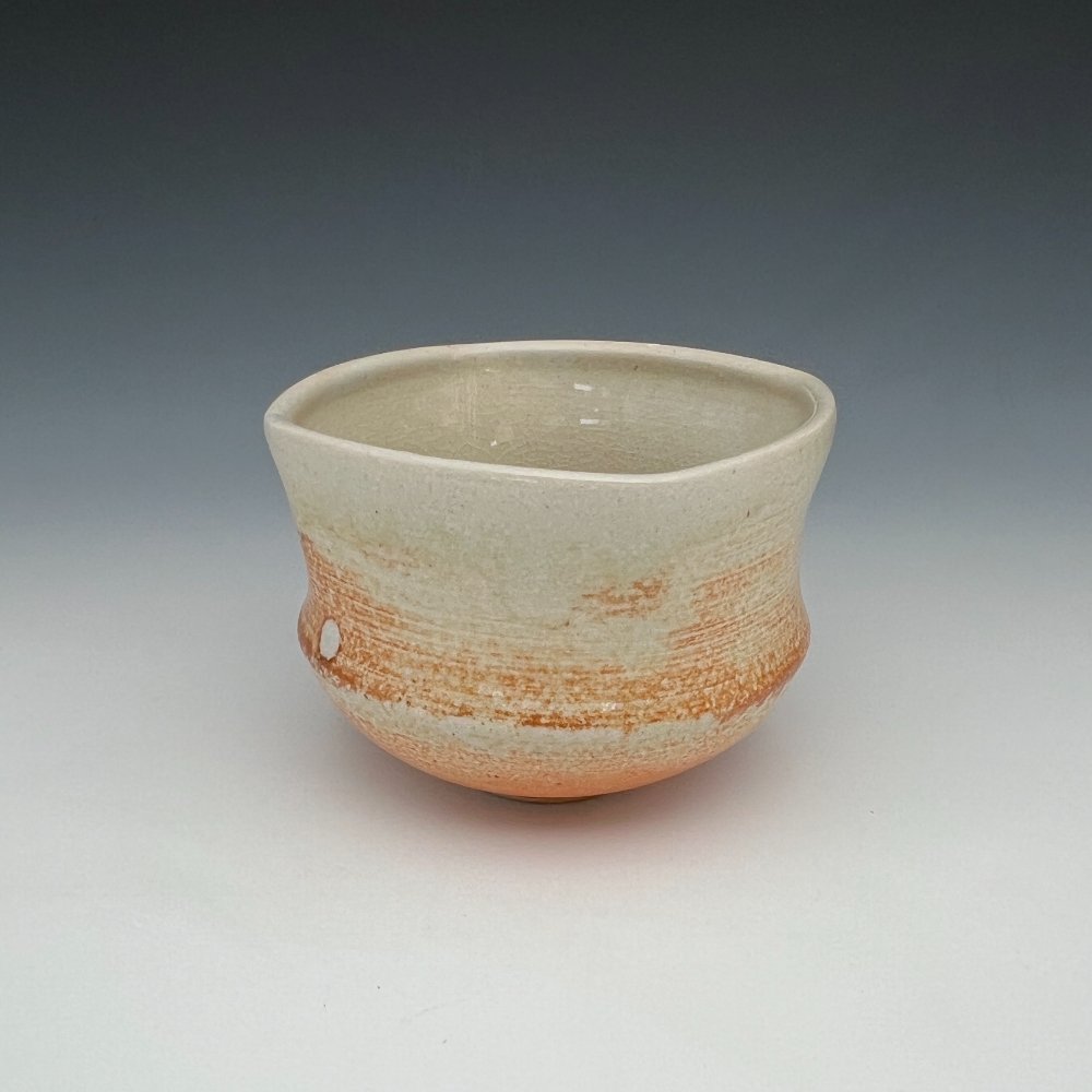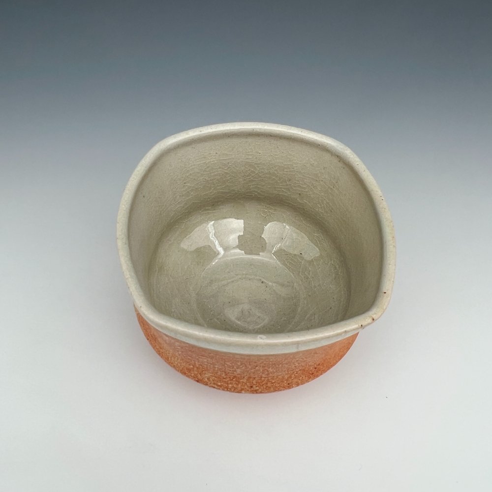 Kathy Cady began this bowl on the wheel and then made a deliberate, inspired decision: to let her hands reshape what the wheel had started. The result is a form that occupies the territory between circle and square, its rim gently coaxed into four soft corners that give the piece a relaxed, organic geometry unlike anything a mold could produce.