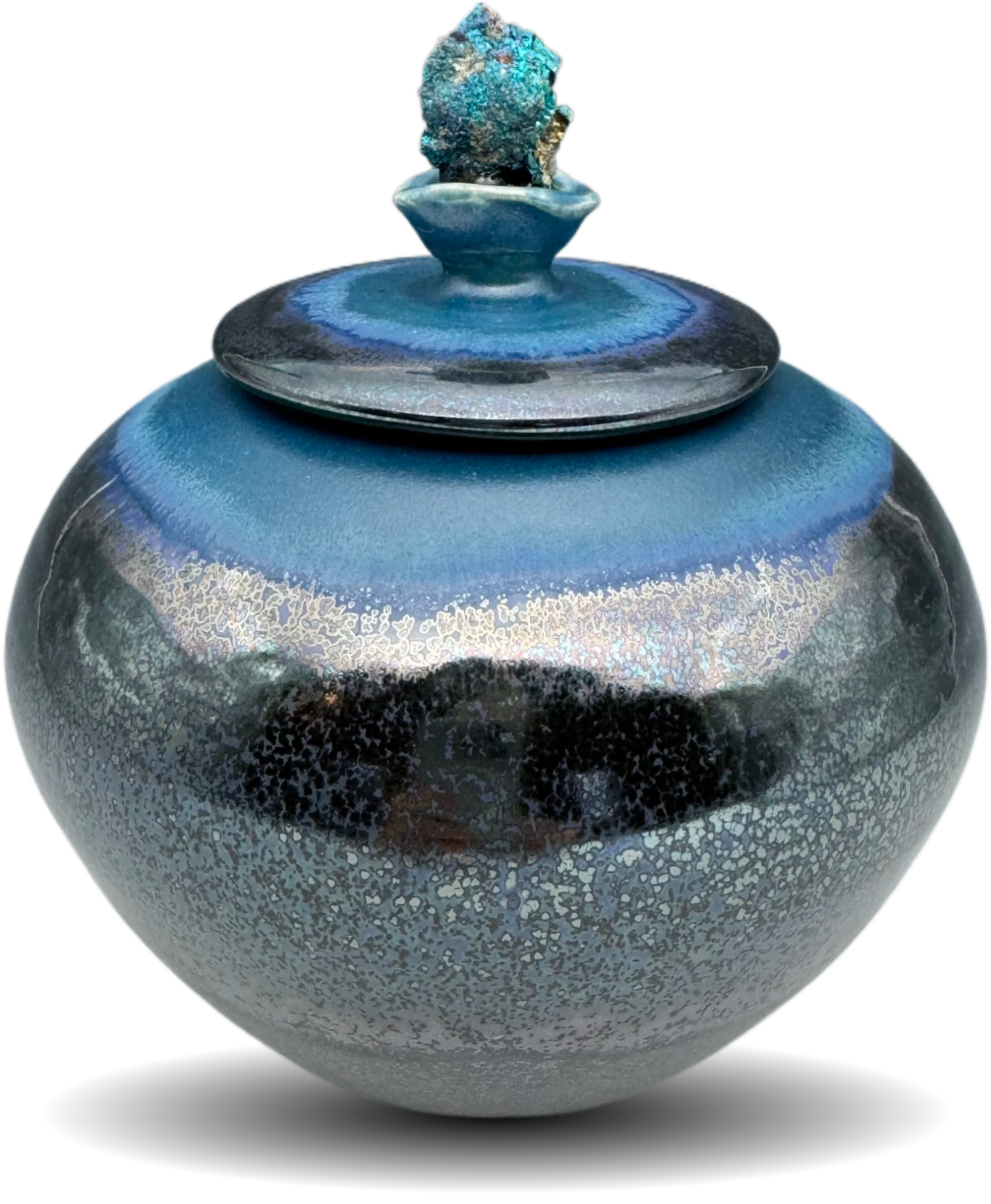 Launching Kathy Cady’s new ceramic collections on Earth Day feels natural because her work quite literally rises from the ground beneath our feet. Each vessel begins as clay shaped by hand on the wheel. The materials themselves tell a story. Clay, silica, feldspar, and kaolin come together with metal oxides and other natural minerals to create glazes that bloom in the kiln. Fire transforms these elements, but their origin remains unchanged. Some pieces are adorned with agate, ammonite, or gemstones, small treasures that once rested quietly within the earth.